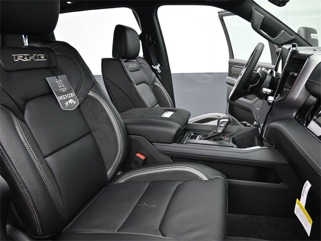 Quick Order Package 22Y RHO, RHO Level 1 Equipment Group (12-Way/1-Way Trailer Connector, 14.4 Touchscreen Display, 240 Amp Alternator, 4G LTE Wi-Fi Hot Spot, Connected Travel and Traffic Services, Connectivity - US/Canada, Disassociated Touchscreen Display, Driver Power Seat Back Massage, Driver Seat Memory, Driver/Passenger Wrapped Assist Handles, Drowsy Driver Detection, Dual Wireless Charging Pad, Evasive Steer Assist, Exterior Mirrors with Memory, Front Passenger Interactive Display, Front Passenger Power Seat Back Massage, Full Length Premium Upgraded Floor Console, GPS Navigation, Hands-Free Active Driving Assist System, Harman/Kardon 19 Speaker Premium Sound, HD Radio, Heads-Up Display, Heated Second Row Seats, Integrated Center Stack Radio, Integrated Voice Command with Bluetooth®, Intersection Collision Assist System, Leather/Carbon Flat-Bottom Steering Wheel, LED CHMSL Lamp, Luxury Front Door Trim Panel, Power Adjustable Pedals with Memory, Power Tailgate, Premium Wrapped Instrument Panel Bezel, Radio: Uconnect 5 Nav with 14.4 Display, Radio/Driver Seat/Mirrors/Pedals Memory, Rain Sensitive Windshield Wipers, Real Carbon Fiber Interior Accents, Rear 60/40 Folding Split Recline Seat, SiriusXM Radio Service, Smartphone as a Key Capable, Surround View Camera System, Traffic Sign Recognition, USB Host Flip, Ventilated Front Seats, and Ventilated Rear Seats), Towing Technology Group (Trailer Hitch Line-Up Assist and Trailer Reverse Guidance), Trailer Tow Group (Trailer Reverse Steering Control and Trailer Tire Pressure Monitoring System), 10 Speakers, 3.92 Rear Axle Ratio, 4-Wheel Disc Brakes, ABS brakes, Adaptive suspension, Adjustable pedals, Air Conditioning, Alloy wheels, AM/FM radio, Apple CarPlay/Android Auto, Auto High-beam Headlights, Auto Power-Folding Mirrors, Auto-dimming door mirrors, Auto-Dimming Exterior Driver Mirror, Auto-Dimming Exterior Passenger Mirror, Auto-dimming Rear-View mirror, Automatic temperature control, Black Exterior Mirrors, Black Power-Fold Trailer Tow Mirrors, Brake assist, Compass, Delay-off headlights, Dome Dual LED Reading Lamp, Driver door bin, Driver vanity mirror, Dual front impact airbags, Dual front side impact airbags, Dual-Pane Panoramic Sunroof, Electronic Stability Control, Exterior Mirrors Courtesy Lamps, Exterior Mirrors with Heating Element, Exterior Mirrors with Supplemental Signals, Exterior Parking Camera Rear, Flareside Box, Forward and Reverse Utility Lights, Front anti-roll bar, Front Bucket Seats, Front Center Armrest w/Storage, Front dual zone A/C, Front fog lights, Front reading lights, Front wheel independent suspension, Fully automatic headlights, Garage door transmitter, Heated door mirrors, Heated front seats, Heated steering wheel, Illuminated entry, Leather Shift Knob, Leather steering wheel, Leather Trimmed Bucket Seats, Low tire pressure warning, Manufacturer's Statement of Origin, Mirror Clearance/Running Lights, MOPAR RHO Hood Graphics, MOPAR Rock Rails, MyFlexCare Service Plan, Navigation System, Occupant sensing airbag, Outside temperature display, Overhead airbag, Overhead console, Panic alarm, Passenger door bin, Passenger vanity mirror, Power door mirrors, Power driver seat, Power passenger seat, Power steering, Power Telescoping Mirrors, Power windows, Power-Adjustable Convex Aux Mirrors, Radio data system, Radio: Uconnect 5 Navigation with 12.0 Display, Rear reading lights, Rear seat center armrest, Rear step bumper, Rear window defroster, Remote k