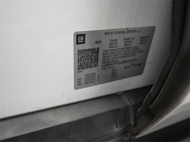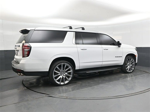 Odometer is 4976 miles below market average! 4D Sport Utility Summit White 2021 Chevrolet Suburban 10-Speed Automatic with Overdrive Premier EcoTec3 5.3L V8 16/20 City/Highway MPG RWD Advanced Trailering Package (Advanced Trailering System, Hitch Guidance w/Hitch View, Integrated Trailer Brake Controller, and Trailer Side Blind Zone Alert), Enhanced Display & Alert Package (15 Diagonal Multi-Color Head-Up Display, HD Surround Vision, Inside Rearview Auto-Dimming Rear Camera Mirror, Rear Camera Mirror Washer, and Rear Pedestrian Alert), License Plate Front Mounting Package, Max Trailering Package (Extra Capacity Cooling System), Preferred Equipment Group 1LZ (12-Way Power Driver & Passenger Seat Adjusters, 1st & 2nd Row Color-Keyed Carpeted Floor Mats, 2 USB Data Ports, 3rd Row 60/40 Power-Folding Split-Bench, Auto-Dimming Inside Rear-View Mirror, Automatic Heated Steering Wheel, Bose 10-Speaker Surround w/CenterPoint, Bright Front & Rear Door Sill Plates, Chrome Door Handles w/Body-Color Strip, Chrome Mirror Caps, Color-Keyed Carpeting Floor Covering, Driver & Front Outboard Passenger Airbags, Dual Exhaust System, Enhanced Driver Information Center, Floor Console w/Storage Area, Front & Rear Park Assist, Hands-Free Rear Power Programmable Liftgate, HD Radio, Heated & Ventilated Driver & Front Passenger Seats, Heated 2nd Row Outboard Seats, Heated Driver & Front Passenger Seats, Infotainment Display, Lane Change Alert w/Side Blind Zone Alert, Lane Keep Assist w/Lane Departure Warning, Leather-Wrapped Steering Wheel, LED Daytime Running Lamps, Memory Settings, Outside Heated Power-Adjustable Mirrors, Power Release 2nd Row Bucket Seats, Power Tilt & Telescopic Steering Column, Rear Cross Traffic Alert, Remote Start, Safety Alert Seat, SiriusXM Radio w/360L, and Universal Home Remote), Premium Package (Adaptive Cruise Control, Dual-Pane Power Panoramic Sunroof, and Enhanced Automatic Emergency Braking), 10 Speakers, 20 x 9 Polished Aluminum Wheels, 2nd Row Pwr Release 60/40 Split-Folding Bench Seat, 3.23 Rear Axle Ratio, 3rd row seats: split-bench, 4-Wheel Disc Brakes, ABS brakes, Adaptive suspension, Air Conditioning, Alloy wheels, AM/FM radio: SiriusXM with 360L, Apple CarPlay/Android Auto, Auto High-beam Headlights, Auto-dimming door mirrors, Auto-dimming Rear-View mirror, Auto-leveling suspension, Automatic temperature control, Brake assist, Bumpers: body-color, Compass, Delay-off headlights, Driver door bin, Driver vanity mirror, Dual front impact airbags, Dual front side impact airbags, Electronic Stability Control, Emergency communication system: OnStar and Chevrolet connected services capable, Four wheel independent suspension, Front anti-roll bar, Front Bucket Seats, Front Center Armrest, Front dual zone A/C, Front reading lights, Fully automatic headlights, Garage door transmitter, Heated door mirrors, Heated front seats, Heated rear seats, Heated steering wheel, Illuminated entry, Leather steering wheel, Low tire pressure warning, Magnetic Ride Control Suspension, Memory seat, Navigation System, Occupant sensing airbag, Outside temperature display, Overhead airbag, Overhead console, Panic alarm, Passenger door bin, Passenger vanity mirror, Perforated Leather Seating Surfaces, Power door mirrors, Power driver seat, Power Liftgate, Power passenger seat, Power steering, Power windows, Premium audio system: Chevrolet Infotainment 3 Premium, Radio: Chevrolet Infotainment 3 Premium System, Rain sensing wipers, Rear air conditioning, Rear anti-roll bar, Rear reading lights, Rear window defroster, Rear window wiper, Remote keyless entry, Roof rack: rails only, Security system, Speed control, Speed-sensing steering, Split folding rear seat, Spoiler, Steering wheel memory, Steering wheel mounted audio controls, Tachometer, Telescoping steering wheel, Tilt ste