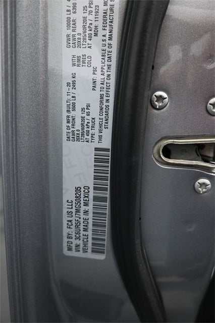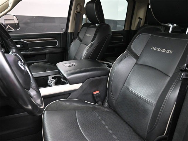 * JD Power Initial Quality Study (IQS) Bed Utility Group (LED Bed Lighting, MOPAR Deployable Bed Step, and MOPAR Spray In Bedliner), Chrome Appearance Group (Chrome Belt Moldings, Chrome Flat Wheel-to-Wheel Side Steps, and Chrome Tow Hooks), Laramie Level 1 Equipment Group (DISC) (2nd Row In Floor Storage Bins, Auto High Beam Headlamp Control, Blind Spot & Cross Path Detection (DISC), Exterior Mirrors w/Memory, Foam Bottle Insert (Door Trim Panel), Mirror-Mounted Aux Reverse Lamps, Power Adjustable Convex Aux Mirrors, Power Adjustable Pedals w/Memory, Power Chrome Tow Mirrors w/Convex Spotter & Memory, Radio/Driver Seat/Mirrors/Pedals Memory, Rain Sensitive Windshield Wipers, Remote Tailgate Release, and Ventilated Front Seats), Off Road Package (Front Performance Tuned Shock Absorbers, Hill Descent Control, Off Road Decal, Off-Road Information Pages, Rear Performance Tuned Shock Absorbers, and Tow Hooks), Quick Order Package 2GH Laramie, Towing Technology Group (DISC) (CTR Stop Lamp w/Cargo View Camera, Surround View Camera System, and Trailer Reverse Guidance), 1-Year SiriusXM Guardian Trial, 10 Speakers, 115V Auxiliary Rear Power Outlet, 12 Touchscreen Display, 2 Way Rear Headrest Seat, 20 x 8.0 Polished Aluminum Wheels, 3.73 Axle Ratio, 4 Way Front Headrests, 4-Wheel Disc Brakes, 4G LTE Wi-Fi Hot Spot, 5-Year SiriusXM Traffic Service, 5-Year SiriusXM Travel Link Service, 5th Wheel/Gooseneck Towing Prep Group, 8.4 Touchscreen Display, ABS brakes, Active Noise Control System, Adjustable pedals, Air Conditioning, Alloy wheels, AM/FM radio: SiriusXM, Anti-Spin Differential Rear Axle, Apple CarPlay, Apple CarPlay/Android Auto, Auto-dimming Rear-View mirror, Automatic temperature control, Brake assist, Bumpers: chrome, Center Hub, Clearance Lamps, Compass, Delay-off headlights, Disassociated Touchscreen Display, Driver door bin, Driver vanity mirror, Dual front impact airbags, Dual front side impact airbags, Electronic Stability Control, Electronically Controlled Throttle, For Details Visit DriveUconnect.com, Front anti-roll bar, Front Center Armrest w/Storage, Front dual zone A/C, Front fog lights, Front reading lights, Front Seat Back Map Pockets, Fully automatic headlights, Garage door transmitter, Google Android Auto, GPS Antenna Input, GPS Navigation, HD Radio, Heated door mirrors, Heated Front Seats, Heated front seats, Heated Steering Wheel, Heated steering wheel, Illuminated entry, Integrated Center Stack Radio, Integrated Voice Command w/Bluetooth®, Leather steering wheel, Leather Trim 40/20/40 Bench Seat, Low tire pressure warning, MOPAR Front & Rear Rubber Floor Mats, Occupant sensing airbag, Outside temperature display, Overhead airbag, Overhead console, Panic alarm, ParkView Rear Back-Up Camera, Passenger door bin, Passenger vanity mirror, Power 2-Way Driver Lumbar Adjust, Power 2-Way Passenger Lumbar Adjust, Power Adjust 8-Way Driver Seat, Power Adjust 8-Way Front Passenger Seat, Power door mirrors, Power driver seat, Power passenger seat, Power steering, Power windows, Radio data system, Radio: Uconnect 12.0 w/Navigation, Radio: Uconnect 4 w/8.4 Display, Rear 60/40 Folding Seat, Rear anti-roll bar, Rear reading lights, Rear seat center armrest, Rear step bumper, Rear window defroster, Remote keyless entry, Security system, SiriusXM Satellite Radio, SiriusXM Traffic Plus, SiriusXM Travel Link, SiriusXM w/360L, Speed control, Split folding rear seat, Steering wheel mounted audio controls, Tachometer, Tilt steering wheel, Tip Start, Traction control, Trip computer, Turn signal indicator mirrors, Variably intermittent wipers