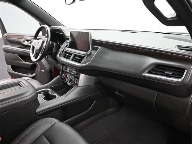 * ALG Residual Value Advanced Trailering Package (Hitch Guidance w/Hitch View, Integrated Trailer Brake Controller, and Smart Trailer Integration Indicator), Driver Alert Package (Lane Change Alert w/Side Blind Zone Alert and Rear Cross Traffic Alert), License Plate Front Mounting Package, Luxury Package (2nd Row Pwr Release 60/40 Split-Folding Bench Seat, 3rd Row 60/40 Power-Folding Split-Bench Seat, HD Surround Vision, Heated 2nd Row Outboard Seats, Heated Steering Wheel, Memory Settings, Outside Heated Power-Adjustable Mirrors, Power Tilt & Telescopic Steering Column, and Rear Pedestrian Alert), Max Trailering Package (Extra Capacity Cooling System), Preferred Equipment Group 2Z7 (1st & 2nd Row Color-Keyed Carpeted Floor Mats, 2-Speed Active Electronic AutoTrac Transfer Case, Auto-Dimming Inside Rear-View Mirror, Automatic Stop/Start, Black Tubular Assist Steps, Bose 9-Speaker Stereo Audio System Feature, Bright Front & Rear Door Sill Plates, Color-Keyed Carpeting Floor Covering, Driver & Front Outboard Passenger Airbags, Enhanced Driver Information Center, Floor Console w/Storage Area, Front High-Approach Angle Fascia, Hands-Free Rear Power Programmable Liftgate, Hill Descent Control, Infotainment Display, Leather-Wrapped Steering Wheel, LED Daytime Running Lamps, Memory Settings for Driver, Red Horizontal-Mounted Recovery Hooks, Remote Start, SiriusXM Radio w/360L, Start/Stop System Disable Button, Universal Home Remote, and Wireless Charging), 4WD, Black Leather, 10-Way Power Driver & Passenger Seat Adjusters, 3.23 Rear Axle Ratio, 3rd row seats: split-bench, 4-Wheel Disc Brakes, 9 Speakers, ABS brakes, Air Conditioning, Alloy wheels, AM/FM radio: SiriusXM with 360L, Apple CarPlay/Android Auto, Auto High-beam Headlights, Auto-dimming Rear-View mirror, Automatic temperature control, Brake assist, Bumpers: body-color, Compass, Delay-off headlights, Driver door bin, Driver vanity mirror, Dual front impact airbags, Dual front side impact airbags, Dual-Pane Power Panoramic Sunroof, Electronic Stability Control, Emergency communication system: OnStar and Chevrolet connected services capable, Four wheel independent suspension, Front anti-roll bar, Front Bucket Seats, Front Center Armrest, Front dual zone A/C, Front High-Back Reclining Bucket Seats, Front reading lights, Fully automatic headlights, Garage door transmitter, Heated door mirrors, Heated Driver & Front Passenger Seats, Heated front seats, Illuminated entry, Leather steering wheel, Leather-Appointed Seat Trim, Low tire pressure warning, Memory seat, Navigation System, Not Equipped w/Front & Rear Park Assist, Not Equipped w/Steering Column Lock, Occupant sensing airbag, Outside temperature display, Overhead airbag, Overhead console, Panic alarm, Passenger door bin, Passenger vanity mirror, Power door mirrors, Power driver seat, Power Liftgate, Power passenger seat, Power Release 2nd Row Bucket Seats, Power steering, Power windows, Premium audio system: Chevrolet Infotainment System 3, Premium Smooth Ride Suspension, Radio: Chevrolet Infotainment 3 Premium System, Rain sensing wipers, Rear air conditioning, Rear anti-roll bar, Rear reading lights, Rear seat center armrest, Rear window defroster, Rear window wiper, Remote keyless entry, Roof rack: rails only, Security system, Set of 4 Wheel Locks (LPO), Speed control, Speed-sensing steering, Split folding rear seat, Spoiler, Steering wheel mounted audio controls, Tachometer, Telescoping steering wheel, Tilt steering wheel, Traction control, Trip computer, Variably intermittent wipers, Voltmeter, and Wheels: 20 x 9 Machined Aluminum We have over