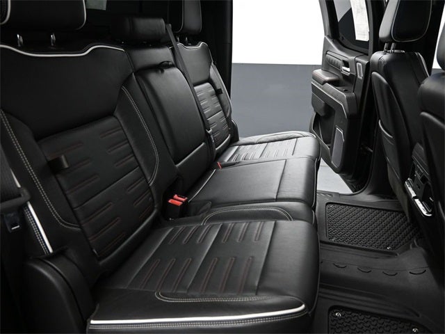 **NO ACCIDENT HISTORY ON CARFAX**, **ONE OWNER**, **Bluetooth®**, **SUNROOF MOONROOF**, **NAVIGATION GPS NAV**, **BACK-UP CAMERA**, Sierra 1500 AT4X, 4D Crew Cab, EcoTec3 6.2L V8, 10-Speed Automatic, 4WD, Black, Jet Black Leather. CARFAX One-Owner. Clean CARFAX. 4D Crew Cab Black 2023 GMC Sierra 1500 10-Speed Automatic AT4X EcoTec3 6.2L V8 14/17 City/Highway MPG 4WD Trailering Package (Hitch Guidance), Sierra 1500 AT4X, 4D Crew Cab, EcoTec3 6.2L V8, 10-Speed Automatic, 4WD, Black, Jet Black Leather, 12 Speakers, 120-Volt Bed Mounted Power Outlet, 120-Volt Instrument Panel Power Outlet, 16-Way Power Driver Seat Adjuster w/Lumbar, 16-Way Power Passenger Seat Adjuster w/Lumbar, 2 Charge/Data USB Ports Inside Center Console, 2 Type-C Charge-Only Rear USB Ports, 2 USB Ports, 3.23 Rear Axle Ratio, 4-Wheel Disc Brakes, ABS brakes, Air Conditioning, Alloy wheels, AM/FM radio, Apple CarPlay/Android Auto, Auto High-beam Headlights, Auto-dimming door mirrors, Auto-dimming Rear-View mirror, Automatic Emergency Braking, Automatic temperature control, Bed View Camera, Bose Premium Series w/12-Speaker System, Brake assist, Buckle to Drive, Color-Keyed Carpeting Floor Covering, Compass, Deep-Tinted Glass, Delay-off headlights, Driver door bin, Driver Memory, Driver vanity mirror, Driver-Selectable Full-Locking Front Differential, Driver-Selectable Full-Locking Rear Differential, Dual front impact airbags, Dual front side impact airbags, Electric Rear-Window Defogger, Electrical Steering Column Lock, Electronic Stability Control, Emergency communication system: OnStar and GMC connected services capable, Floor-Mounted Center Console, Following Distance Indicator, Forward Collision Alert, Front anti-roll bar, Front Bucket Seats, Front Center Armrest, Front dual zone A/C, Front fog lights, Front Pedestrian Braking, Front Prem Floor Liners w/Removable Carpet Insert, Front Rainsensing Wipers, Front reading lights, Front wheel independent suspension, Full Grain Leather Seat Trim, Fully automatic headlights, Garage door transmitter, Genuine wood dashboard insert, Genuine wood door panel insert, Gloss Black Header w/Drk Nickel Grille Insert Bars, GMC Connected Access Capable, HD Surround Vision, Heads-Up Display, Heated 2nd Row Outboard Seats, Heated door mirrors, Heated Driver & Front Outboard Passenger Seating, Heated front seats, Heated rear seats, Heated steering wheel, Heavy-Duty Air Filter, Hill Descent Control, Hitch Guidance w/Hitch View, Illuminated entry, In-Vehicle Trailering App, Integrated Trailer Brake Controller, IntelliBeam Automatic High Beam On/Off, Keyless Open & Start, Lane Keep Assist w/Lane Departure Warning, LED Cargo Area Lighting, Low tire pressure warning, Memory seat, Multicolor 15 Diagonal Head-Up Display, MultiPro Audio System by Kicker (LPO), Navigation System, Occupant sensing airbag, Off-Road Suspension, OnStar & GMC Connected Services Capable, Outside temperature display, Overhead airbag, Overhead console, Panic alarm, Passenger door bin, Passenger vanity mirror, Perimeter Lighting, Power Door Locks, Power door mirrors, Power driver seat, Power Front Passenger Windows w/Express Up/Down, Power Front Windows w/Driver Express Up/Down, Power moonroof, Power passenger seat, Power Rake & Telescoping Steering Column, Power Rear Windows w/Express Down, Power Sliding Rear Window w/Rear Defogger, Power steering, Power Sunroof, Power windows, Premium audio system: GMC Infotainment System, Push Button Start, Radio data system, Radio: Premium GMC Infotainment Audio System, Rain sensing wipers, Rear Cross Traffic Braking, Rear Pedestrian Detection, Rear Prem Floor Liners w/Removable Carpet Insert, Rear reading lights, Rear seat center armrest, Rear step bumper, Rear Wheelhouse Liners, Rear window defroster, Remote keyless entry, Remote Vehicle Starter System, Safet